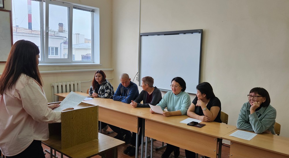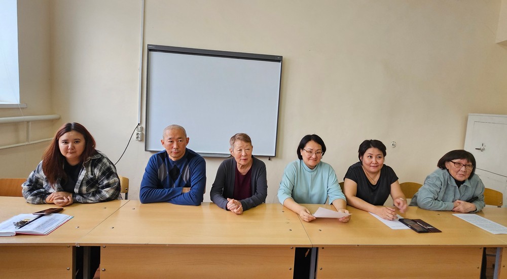 Комиссия состояла как из преподавателей выпускающей кафедры – профессор Лиджеева К.Ф., доценты Мацакова Н.П., Оконова Л.В., Музраева Е.Ш. так и из представителей деканата гуманитарного факультета – заместитель по учебной работе Авлиев В.Н. и заместитель по воспитательной и научной работе Колдаева Ц.Ц.