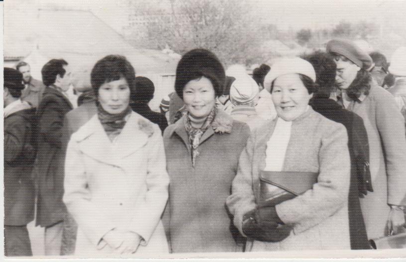 Фото 4. Слева направо: Максимова Светлана Фёдоровна, Бадмаева Нана Санджиевна, Манджиева Кермен Улюмджиевна. Сзади Прокопенко Анна Ивановна
