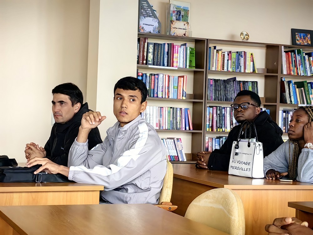 21 октября иностранные слушатели группы РКИ 1.2., обучающиеся на факультете довузовской подготовки и обучения иностранных граждан, вместе со своим куратором доц. Э.У. Омакаевой приняли участие в заседании разговорного клуба «Глобус» на базе Национальной библиотеки им. А.М. Амур-Санана. Это был удивительный день, наполненный интересными идеями и открытиями. Слушатели ФДПОИГ Гахырман Эйяев и Ахмет Шукуров из Туркменистана, Джордан Дидье и Мпуме Дарла из Камеруна, Джотан Модест из Бенина, Годей Вилфрид из Кот-д’Ивуара получили прекрасную возможность максимально проявить свои личностные навыки и способности, получить дополнительную мотивацию к изучению русского языка и культуры.