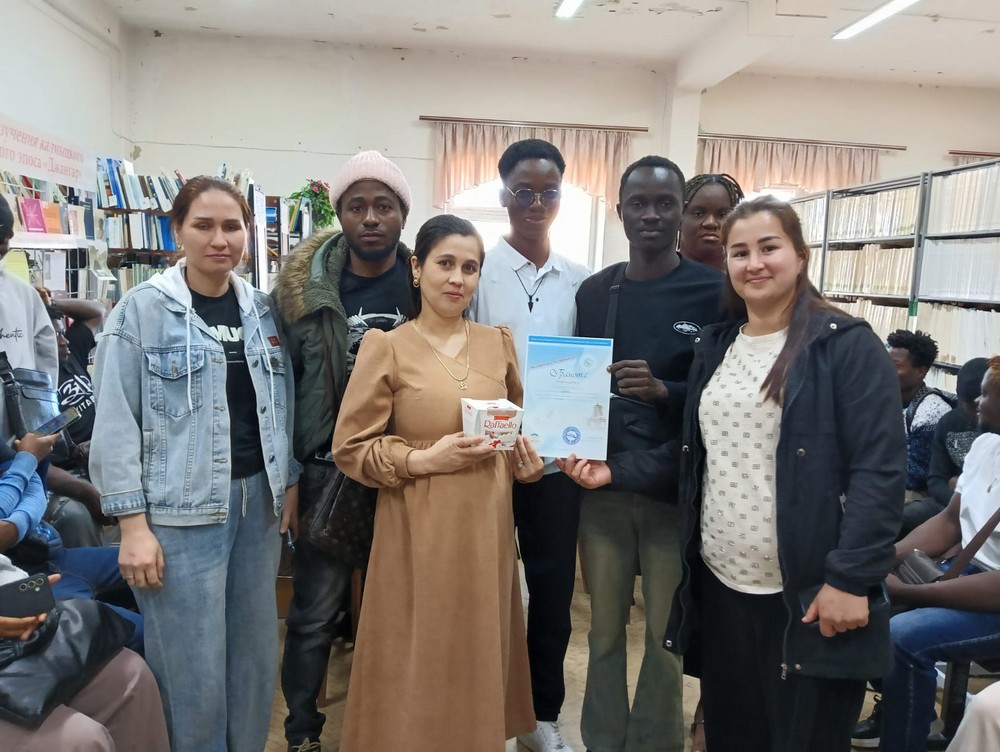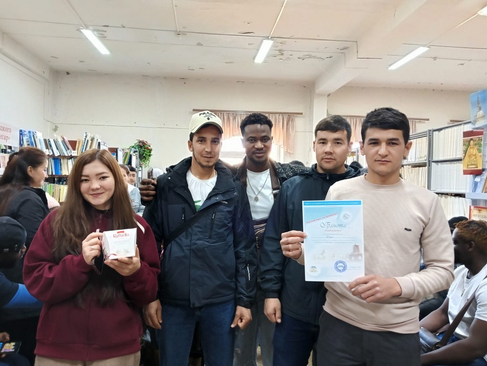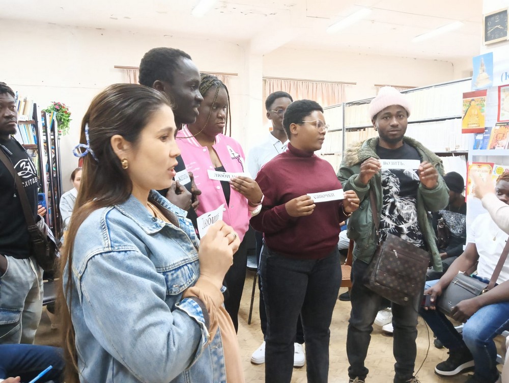Вкладом научной библиотеки КалмГУ в систему подготовки иностранных студентов в рамках осенней языковой школы «Сердцу близкая Россия» явилось мероприятие – интерактивная игра «Русский язык, ты прекрасен!», участниками которой стали слушатели факультета довузовской полготовки и обучения иностранных граждан из Африки и Туркменистана.