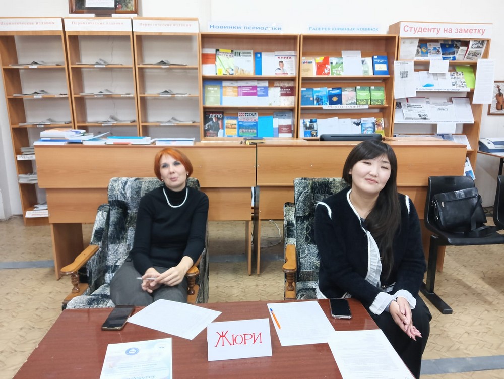 После жеребьёвки участники разделились на три команды по 10 человек и выбрали капитанов. Жюри в составе зам.директора научной библиотеки Лиджиевой Екатерины Николаевны и куратора группы Болдыревой Ольги Николаевны оценивали по 5-балльной системе выступление команд в следующих конкурсах: