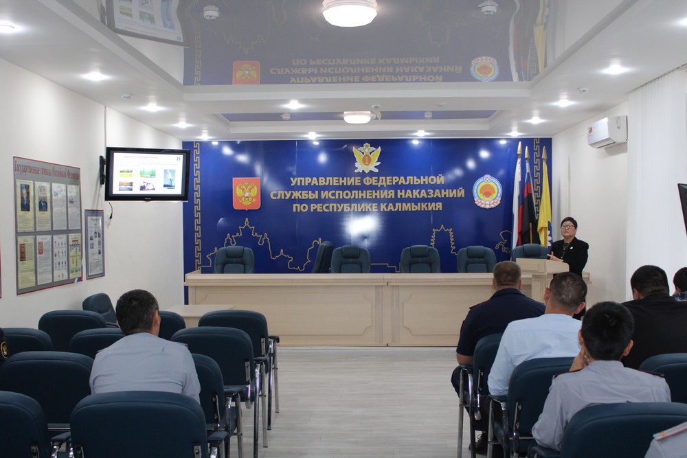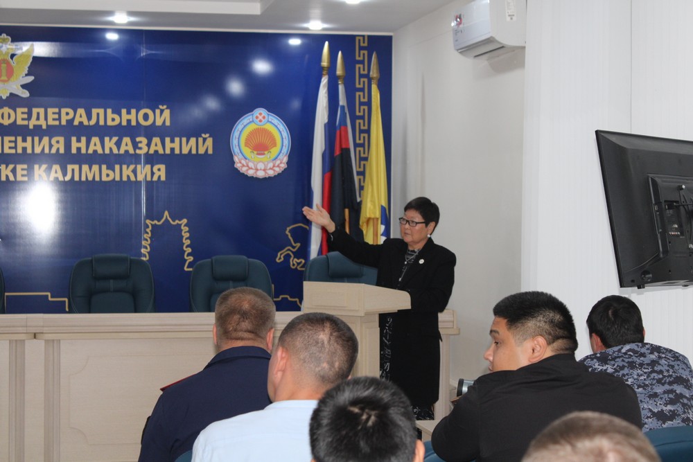 С лекцией по такой теме перед работниками Управления федеральной службы исполнения наказаний России по Республике Калмыкия выступила лектор Всероссийского общества «Знание», доктор педагогических наук, профессор, заведующая кафедрой калмыцкой литературы и журналистики Р.Б.Дякиева.