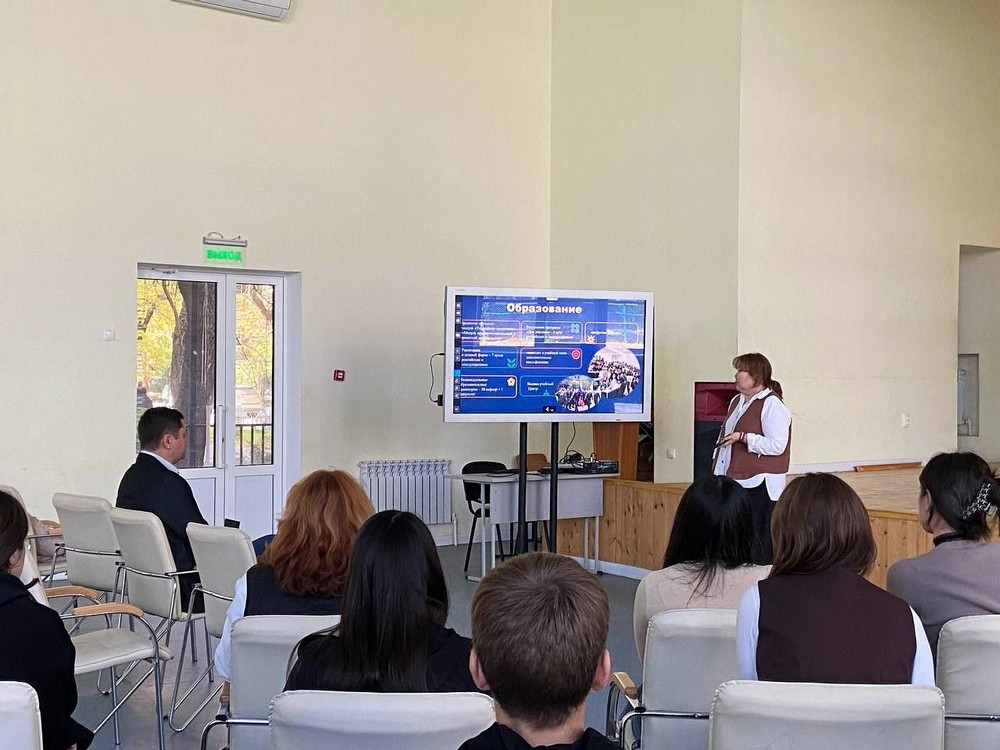 Знакомство началось с ознакомительной беседы, в ходе которой школьникам рассказали о структуре КалмГУ, разнообразии уровней образования, а также о насыщенной внеучебной жизни студентов: творческих коллективах, спортивных секциях и общественных объединениях.