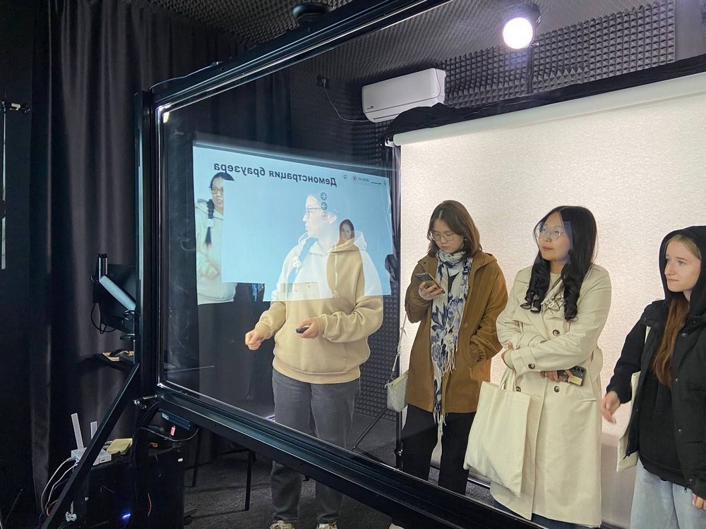 Далее маршрут экскурсии прошел через несколько ключевых подразделений университета. В Детском университете ребята увидели, как происходит раннее развитие способностей у самых юных студентов. Детский университет — уникальное пространство, где царит атмосфера творчества и обучения. На Цифровой кафедре Наталья Ланцынова провела для гостей захватывающую экскурсию по современной видеостудии, раскрыв секреты создания цифрового контента.