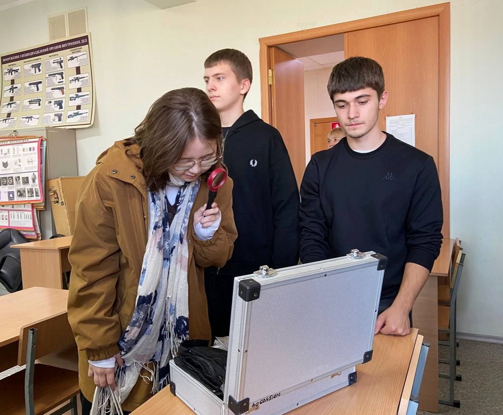 Завершился визит знакомством с Факультетом управления и права. Здесь школьников ждало самое настоящее погружение в мир юриспруденции: преподаватели показали оснащенную современным оборудованием криминалистическую лабораторию, где им продемонстрировали, как работают современные методы расследования.
