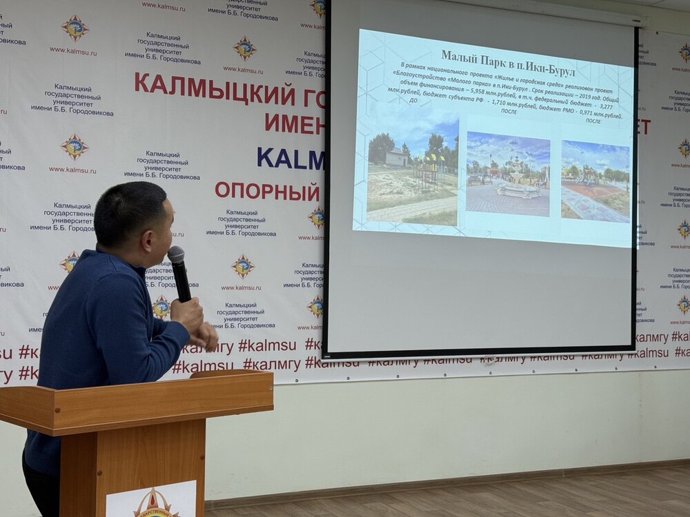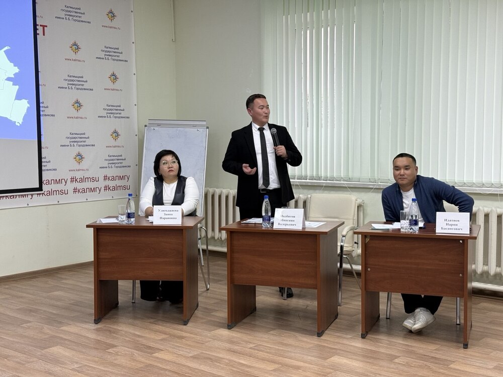 В Калмыцком государственном университете им. Б.Б. Городовикова прошел День муниципалитета, организованный Центром карьеры КалмГУ. На этот раз свой кадровый и образовательный потенциал представил Ики-Бурульский район. Во встрече приняли участие проректор по воспитательной работе и молодежной политике КалмГУ Мингиян Надбитов, заместитель главы Ики-Бурульского района Нарни Идатиев, заведующая отделом образования администрации района Заяна Улюмджиева, деканы, преподаватели и студенты университета.