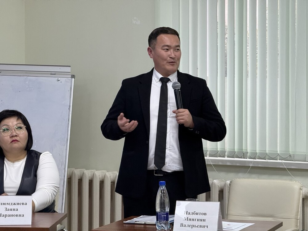 Особое место в программе встречи заняло выступление Басана Хулхачеева – учителя калмыцкого языка и литературы Бага-Бурульской средней школы, победителя республиканского конкурса «Педагог года Калмыкии — 2025» в номинации «Лучший учитель родного языка».