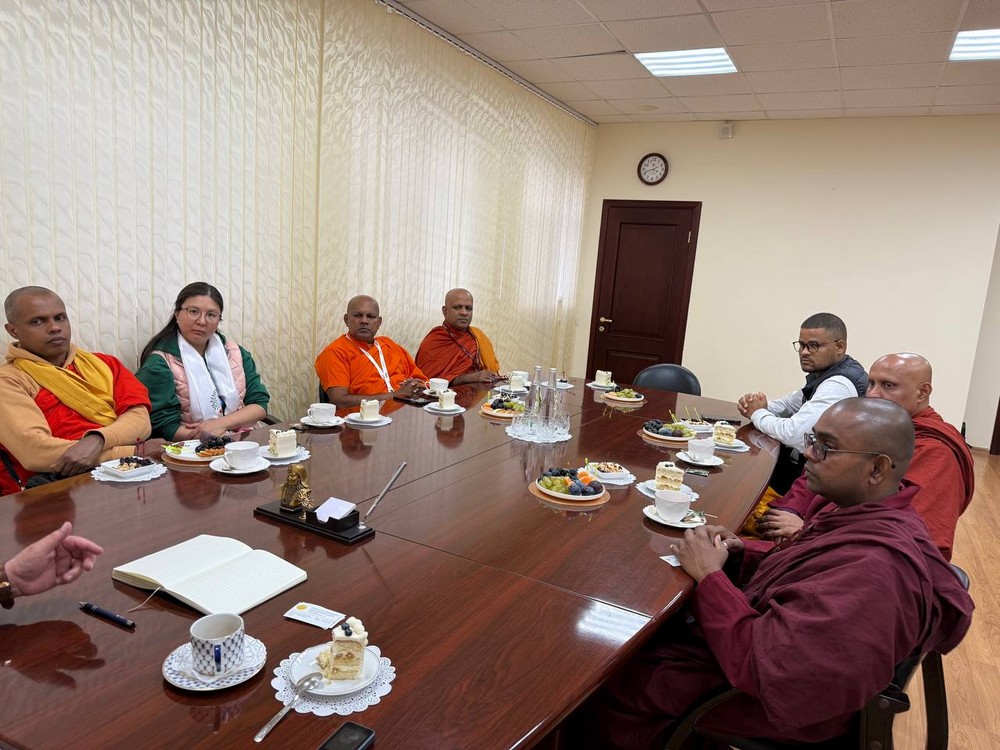 Особый интерес вызвал тот факт, что двое монахов – Рев Васкадуве Сири Сарана и Бханте Ньянасиха – учились в России и свободно говорят на русском языке. Бханте Ньянасиха является выпускником КалмГУ, где он обучался в магистратуре по специальности «Филология». Сейчас учится по программе аспирантуры. Члены делегации подчеркнули, что знание русского языка является для них важным инструментом в деле распространения учения Будды, и именно поэтому их направили для участия в форуме в России.