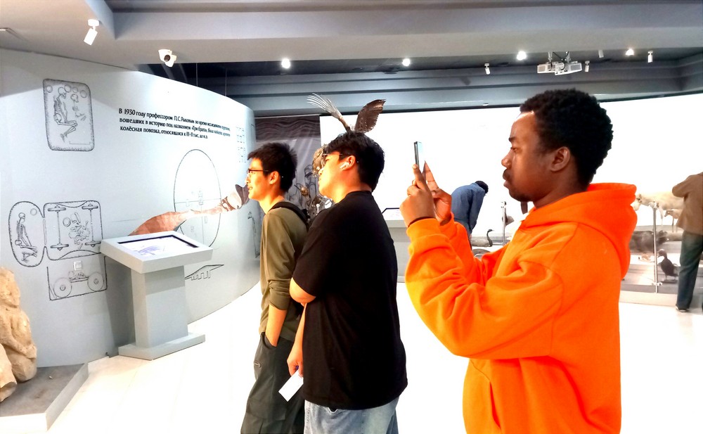 Большой интерес у иностранцев вызвала экспозиция «Природа Калмыкии», которая включает разделы «Историческая геология», «Географическая характеристика Республики Калмыкия», «Животный мир Калмыкии», «Птицы», «Растения». На выставке широко представлен животный мир Республики Калмыкия. Сайгак — копытное животное, которое появилось на Земле около 2,5 миллионов лет назад и обитало вместе с мамонтами и саблезубыми тиграми, привлек внимание ребят.