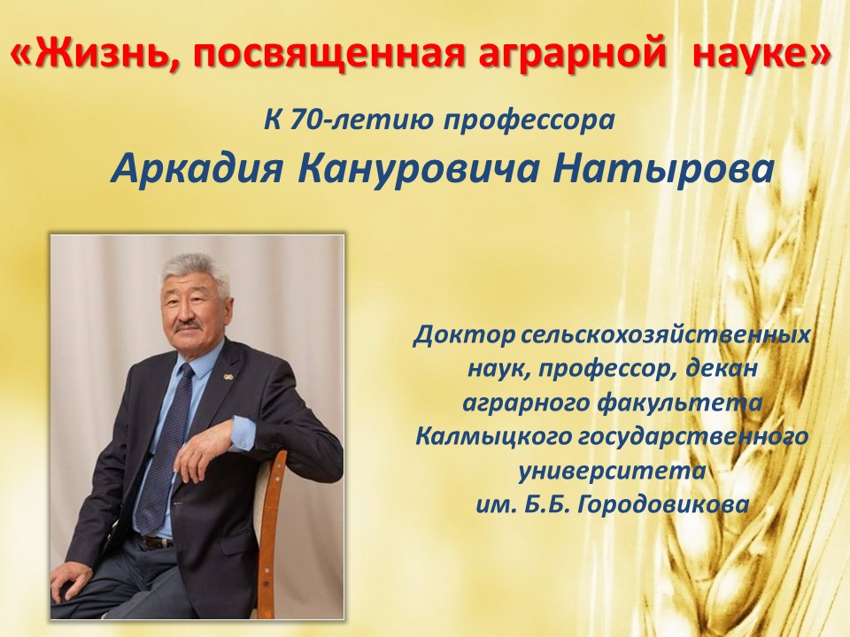 http://lib.kalmsu.ru:8087/jirbis2/index.php?option=com_content&view=article&id=1347:zhizn-posvyashchennaya-agrarnoj-nauke-k-70-letiyu-doktora-selskokhozyajstvennykh-nauk-professora-kalmgu-arkadiya-kanurovicha-natyrova&catid=12&Itemid=527