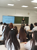 Во время встречи Босхомджиева Е.Д. рассказала учащимся о реализуемых на медицинском факультете специальностях и направлениях подготовки, учебно-практической базе, выпускающих кафедрах, условиях приема в 2026 году (перечне, форме, минимальном количестве баллов и сроках вступительных испытаний, сроках приема документов и зачисления). Ребята ознакомились с презентацией и информационными буклетами.
